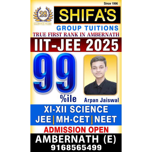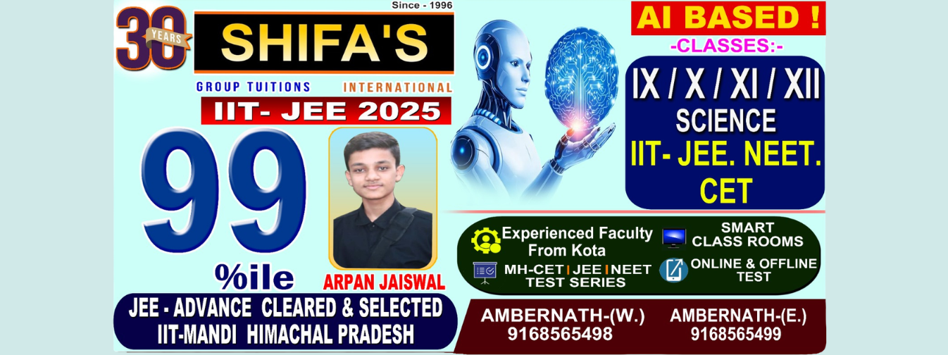 1st Floor, Sai siddhi Bldg, Nr. Canara Bank, Opp Shree Rath Hotel, Kansai Section, Ambernath (E.), Maharashtra – 421501 *** Mobile : +91 91685 65499 | 91685 65498 | 76667 24830 *** Email : shifasclasses1996@gmail.com